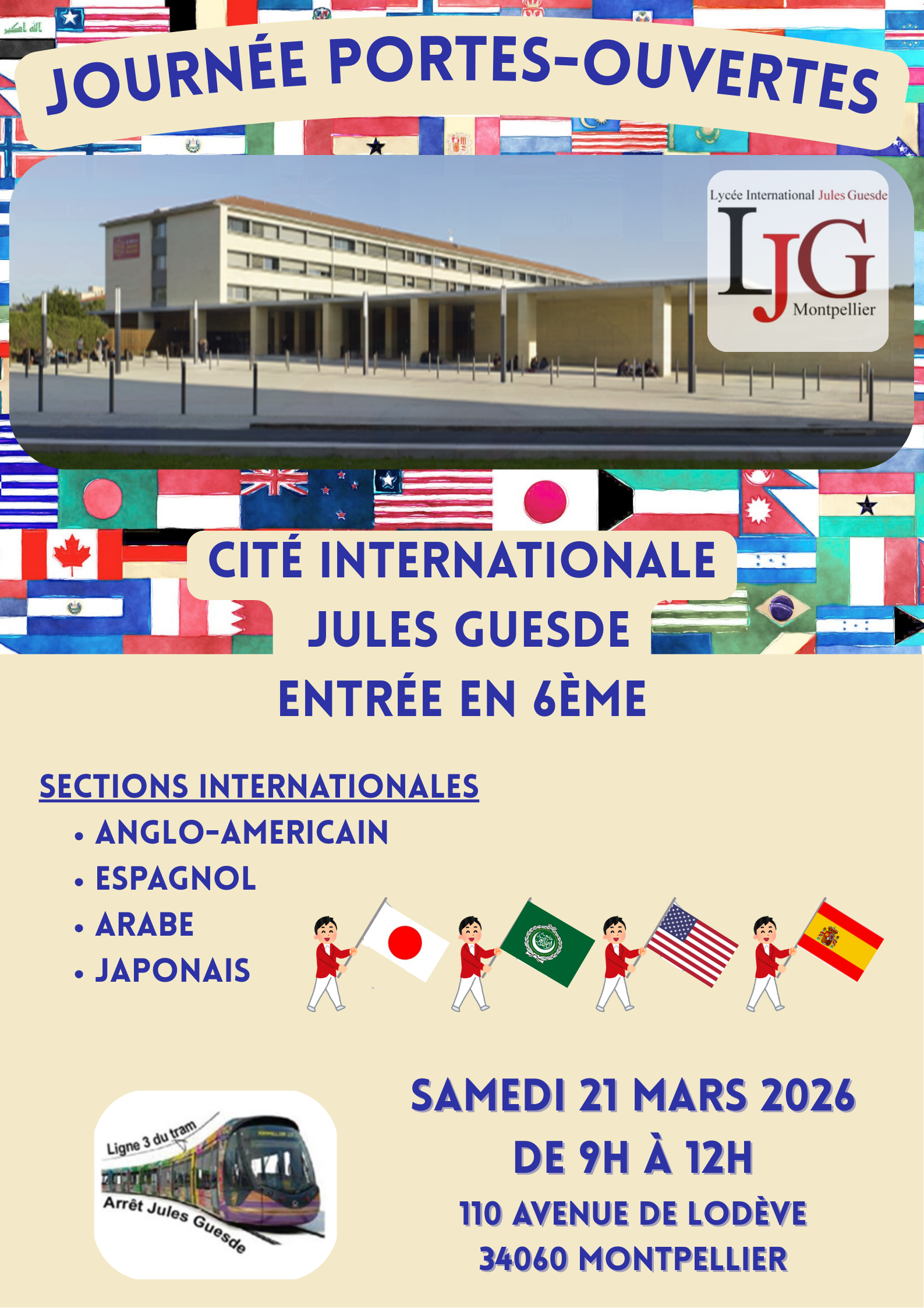 ; COLLEGE (entrée en 6ème) ET LYCEE (2nde à terminale) -> Samedi 21 mars 2026 - de 9 heures à 12 heures